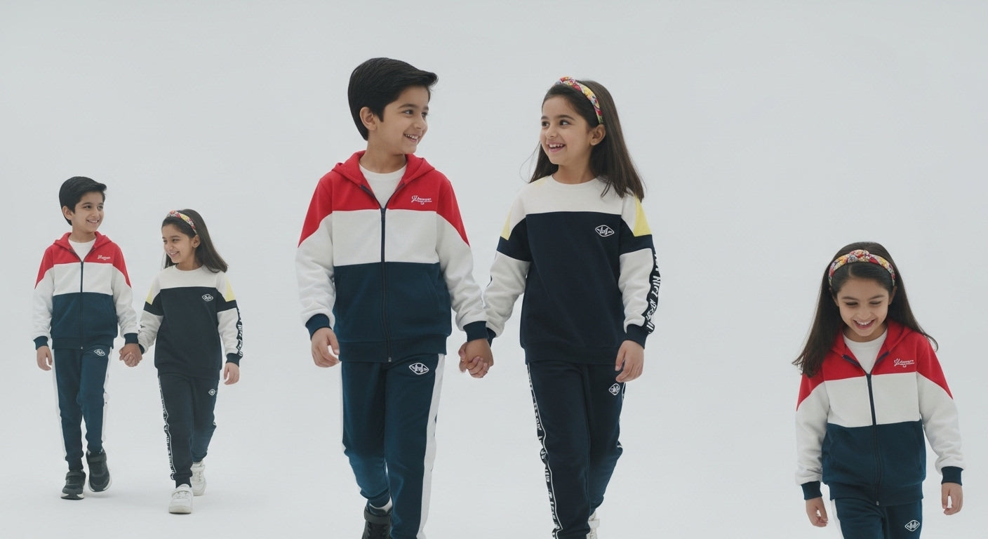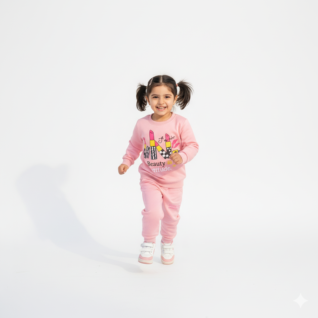 "Playful Style: Girls Tracksuit with Bold Heart Prints 💗"
